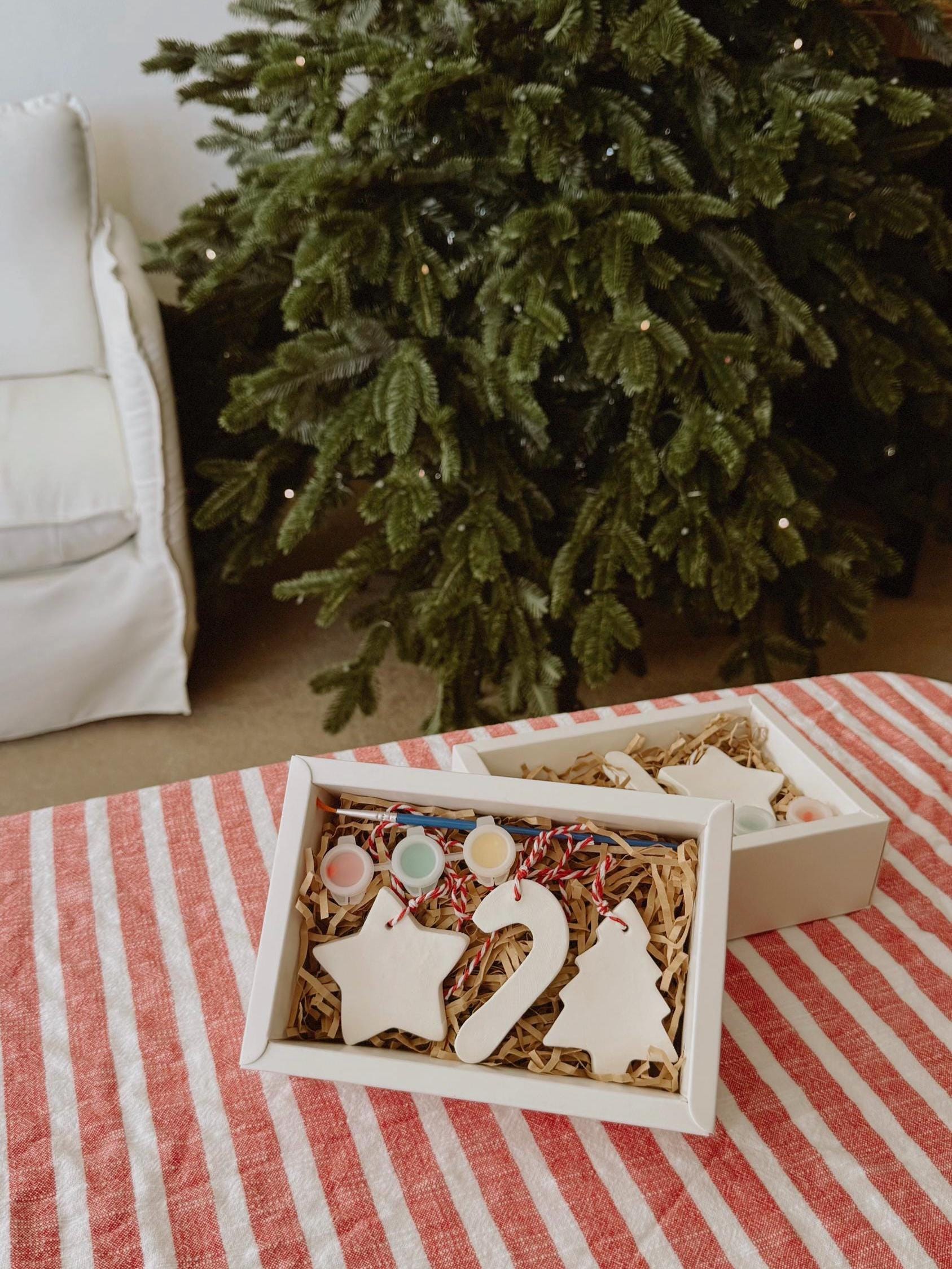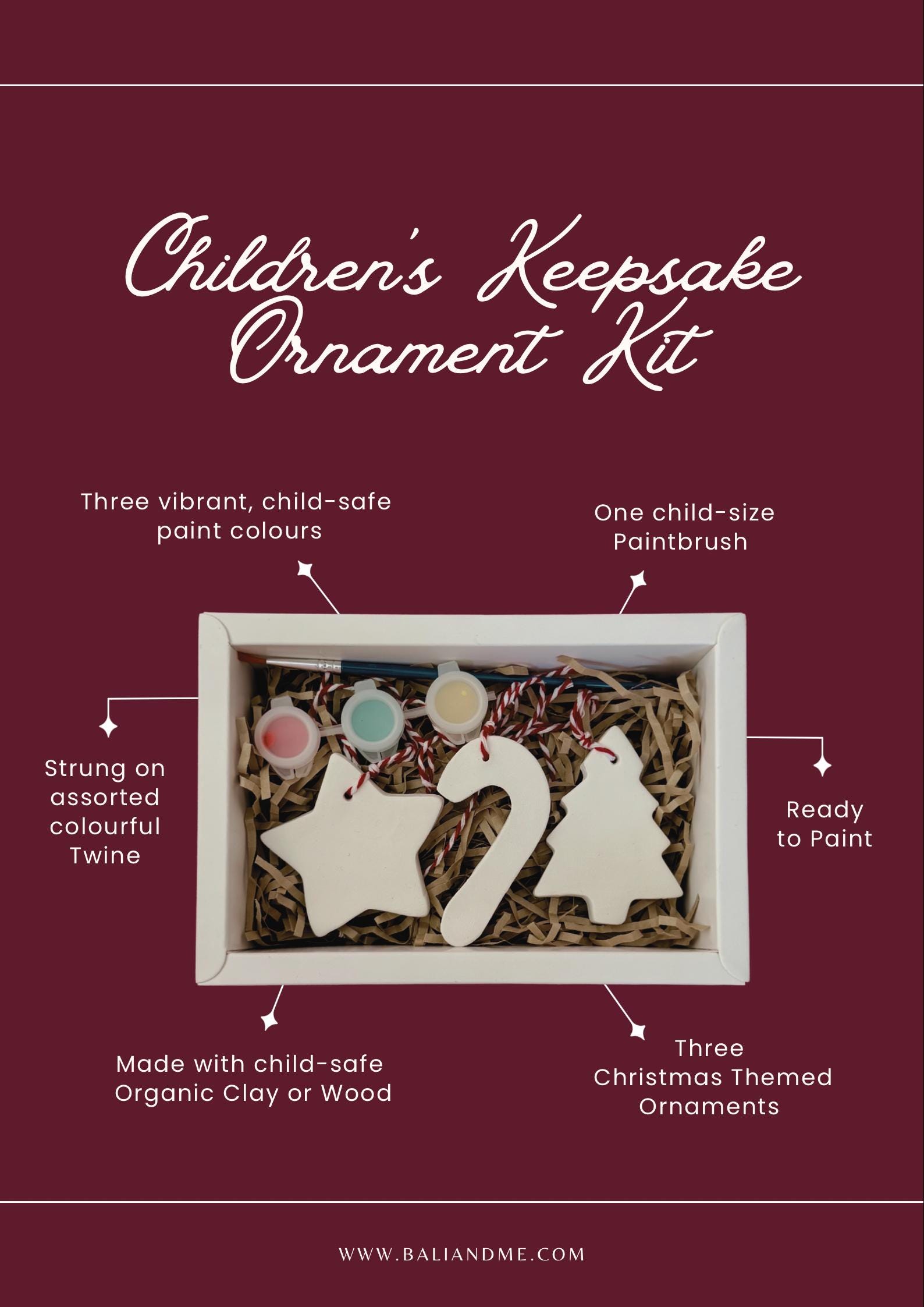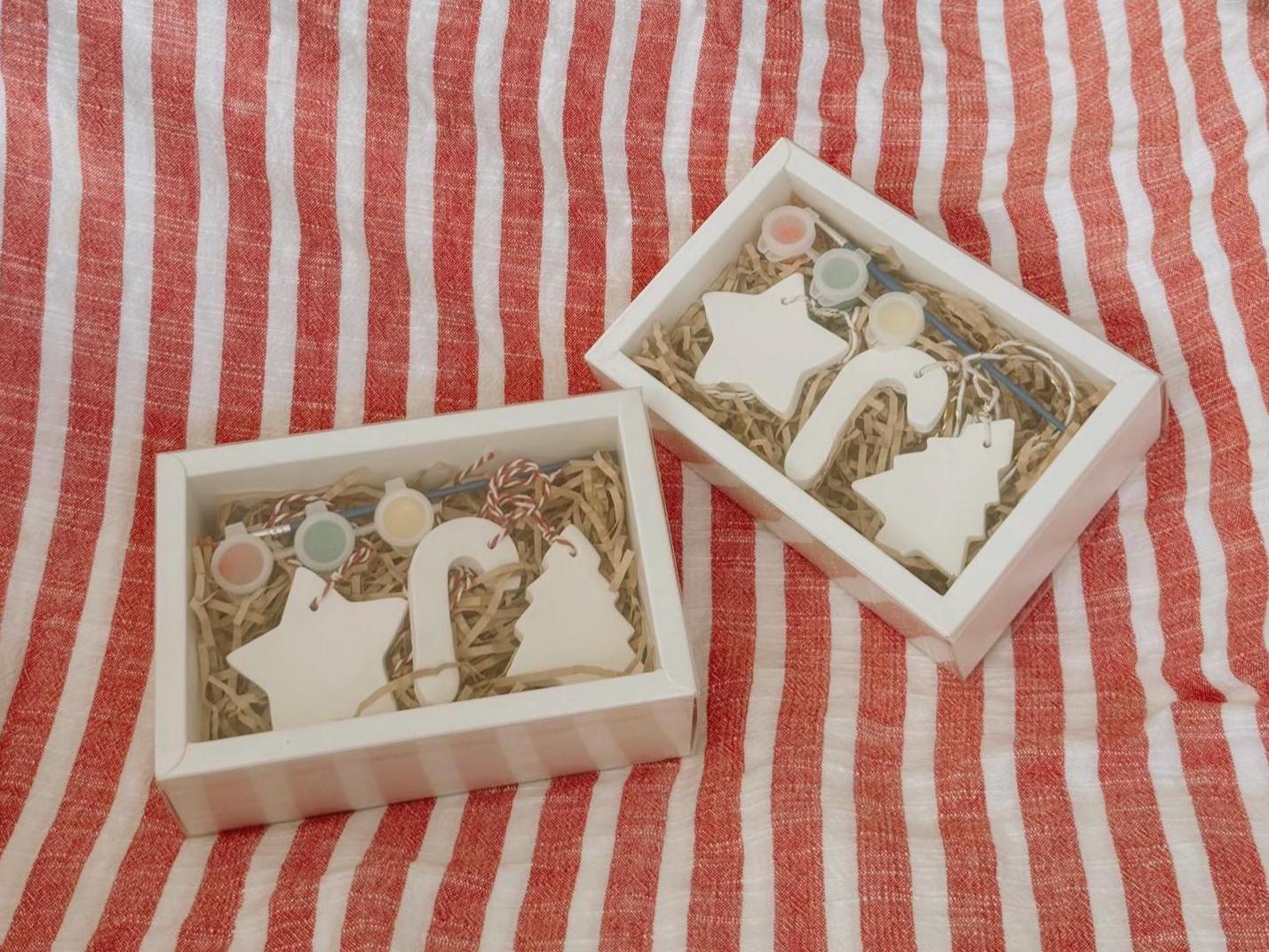- Three ornaments (clay or wood) – Ready to paint and personalise