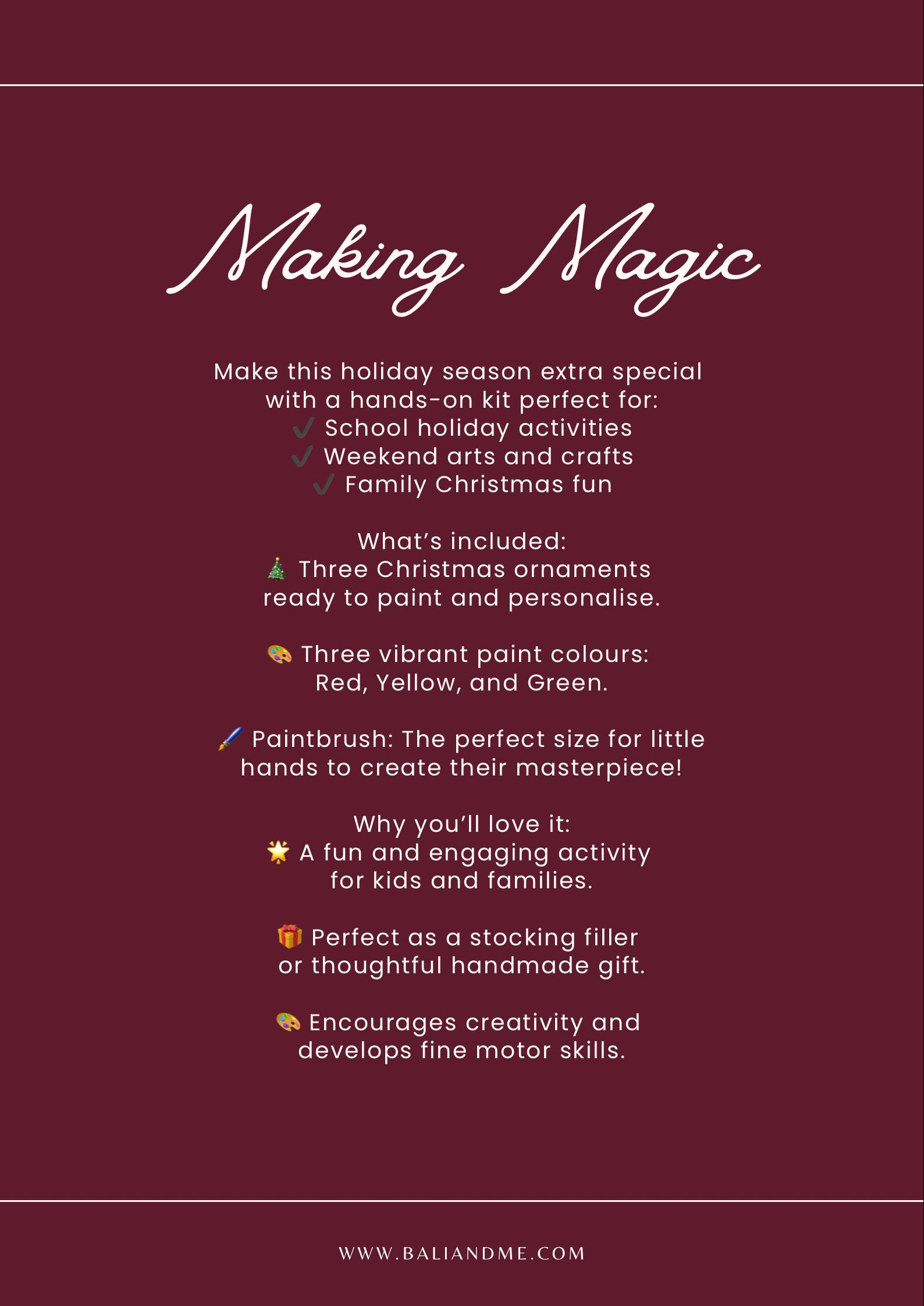 As a mum of two little boys who love watching me create for others, this kit began as something we made together. They wanted to craft their own ornaments — and it quickly became a cherished tradition. Now, I’m sharing it with you.
