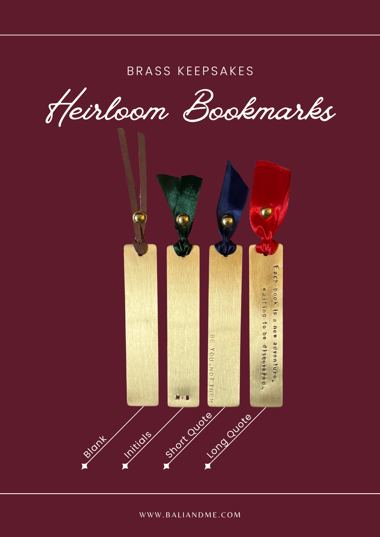 Each bookmark can be personalised with a name, date, or meaningful phrase, creating a one-of-a-kind keepsake — or left unmarked to let the brushed brass shine.