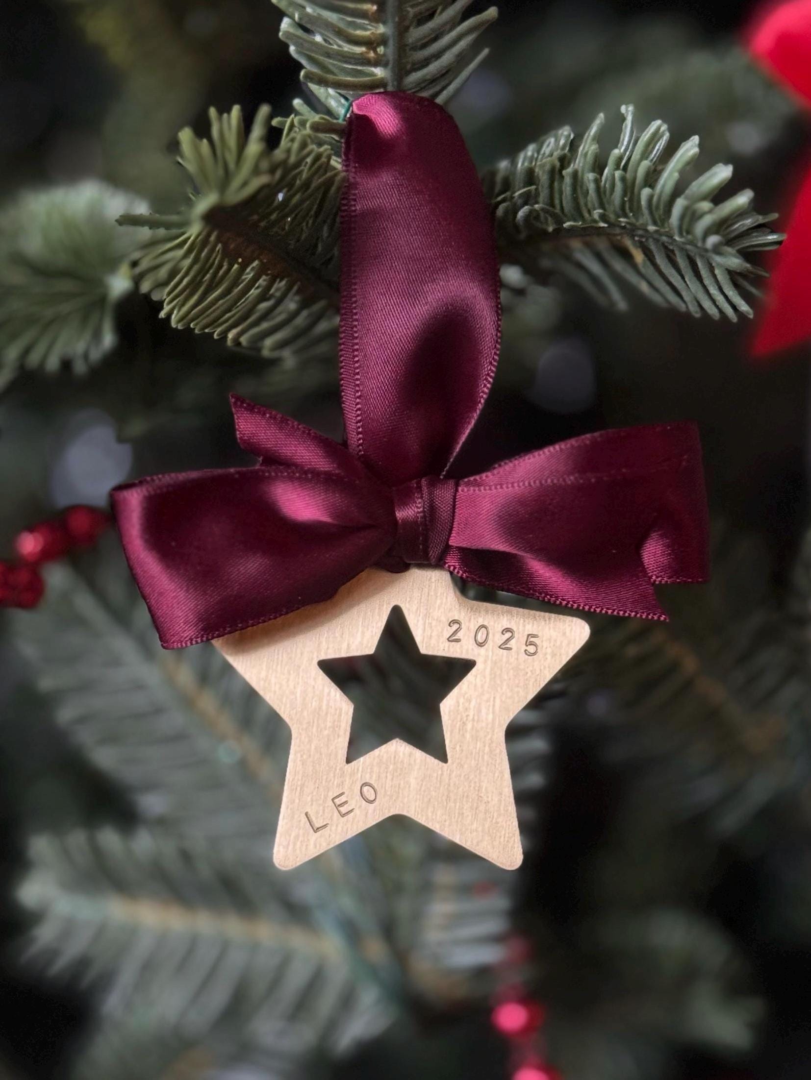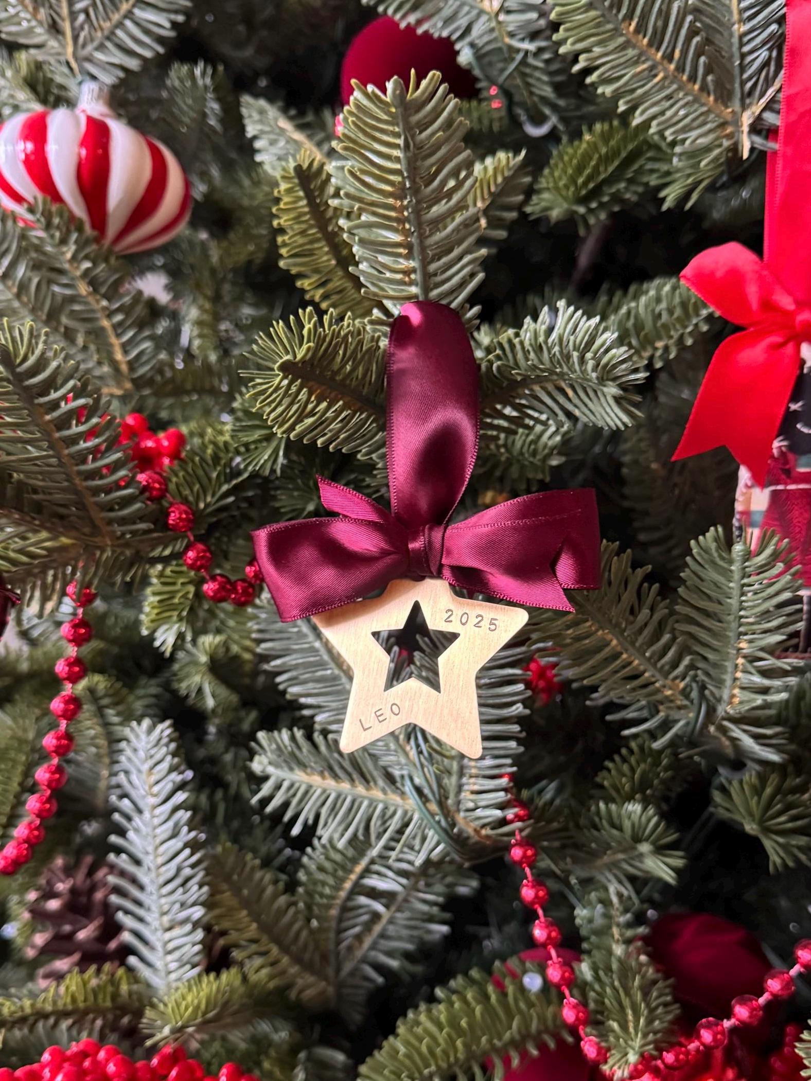 Each piece can be personalised with a name, date, or meaningful phrase, creating a truly one-of-a-kind keepsake. Or, leave it unmarked and let the brushed brass shine on its own — beautifully reflecting the soft glow of your Christmas lights.