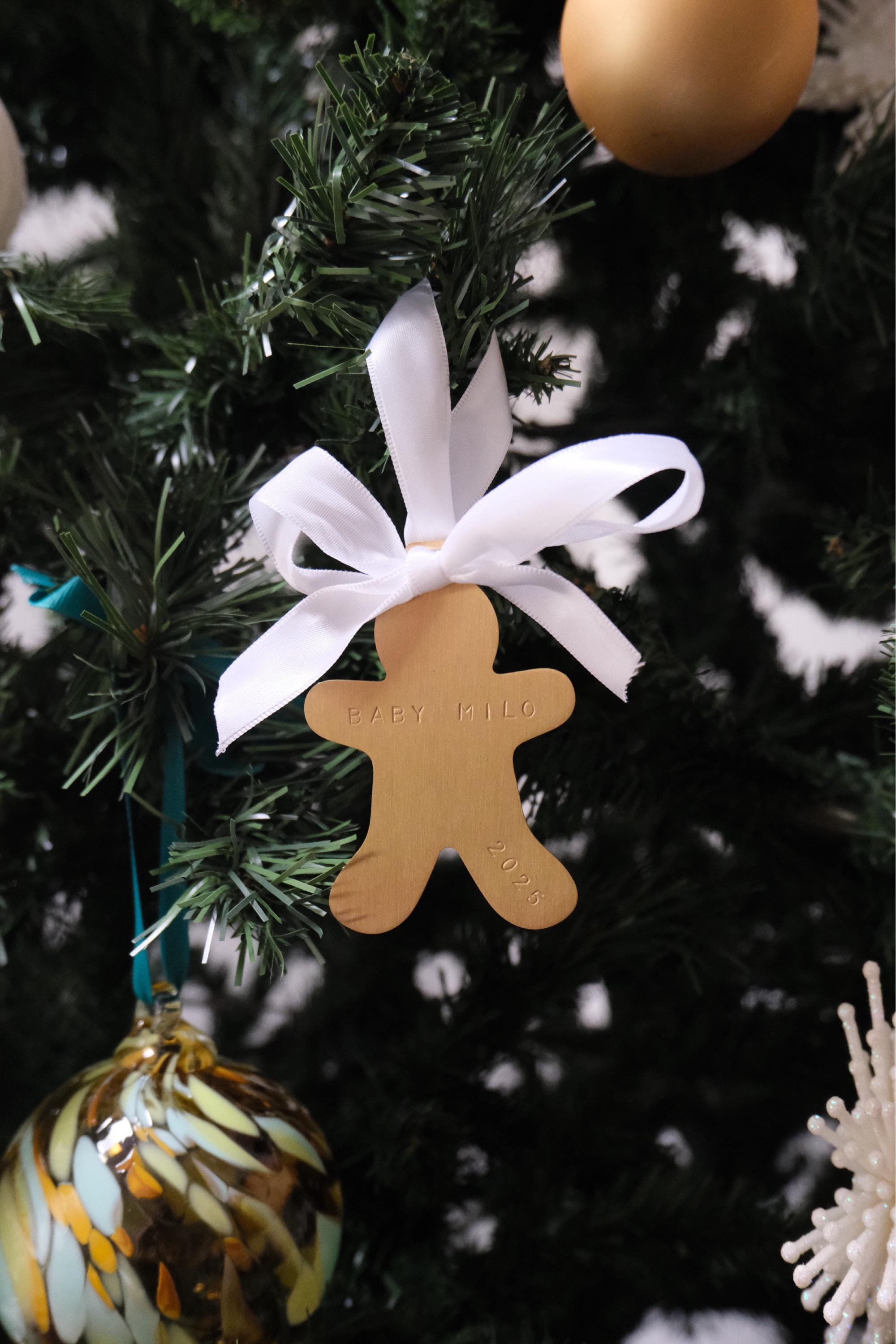 Each piece can be personalised with a name, date, or meaningful phrase, creating a truly one-of-a-kind keepsake. Or, leave it unmarked and let the brushed brass shine on its own — beautifully reflecting the soft glow of your Christmas lights.